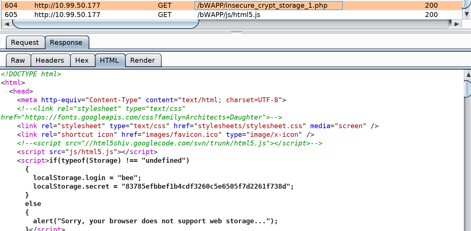 would be able to retrieve any secrets by reading the variables localStorage.login